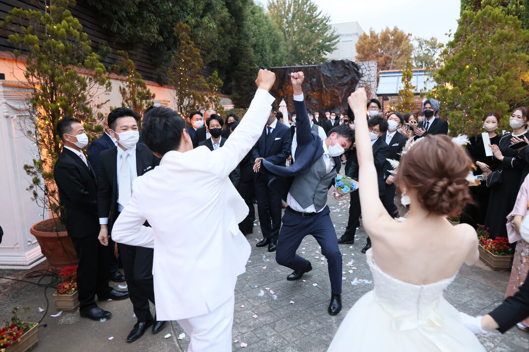 - ゲストとの距離が近いスパニッシュガーデンのチャペルだからこその素敵な景色でした。また、挙式が始まる前の『ファーストミート』と『家族の時間』を大切にしてくれたことも嬉しかったです。