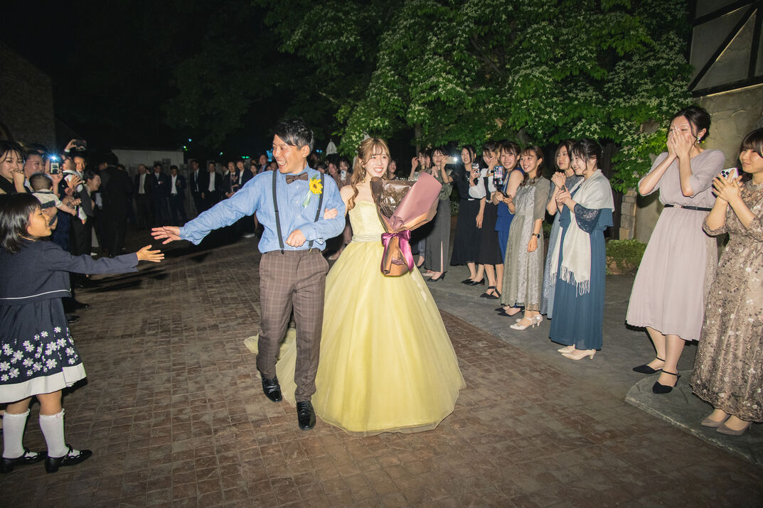 - お色直しでは、新婦ドレスのカラー当てを行っておりドキドキしながら入場したのですが、なんと逆サプライズをされてしまいました!