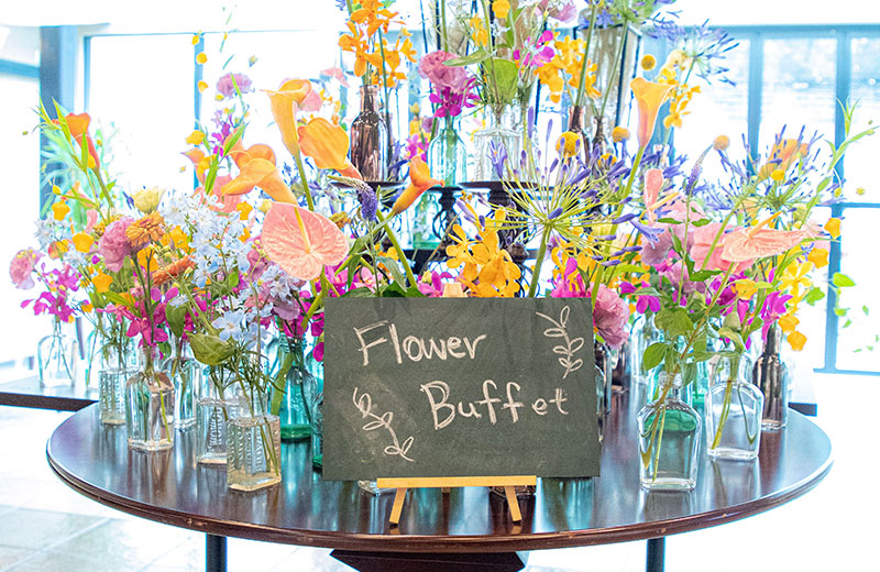 緑が多く、全体的に綺麗で花が多く飾られていたため華やかでした。
